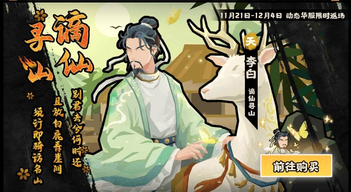 11月21日至12月4日,诗酒风流,剑气凌云!天材名臣·李白演化概率限时上升!