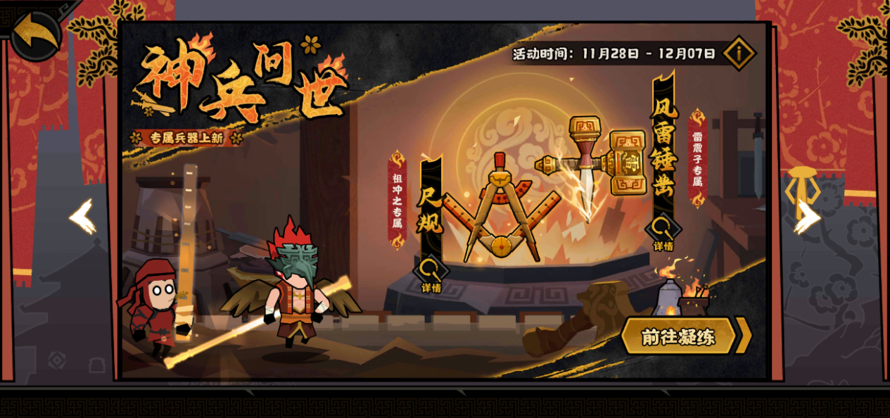 11月28日,神兵问世!全新专属兵器祖冲之——“尺规”、雷震子——“风雷锤凿”即将登场凝练商店!