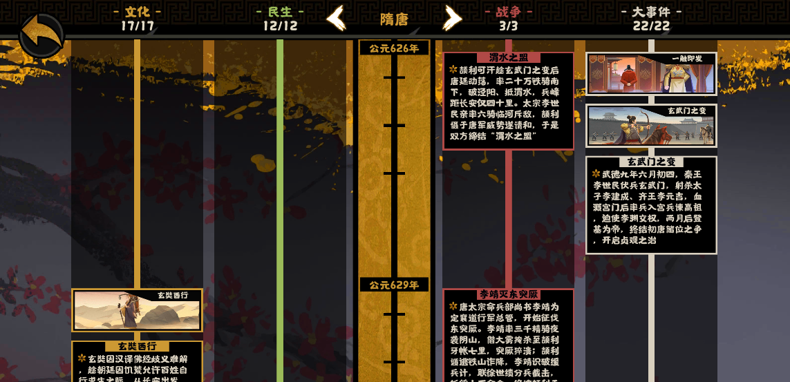 在这三年多的时间内,时代从三皇五帝更新到了隋唐,我们已经制作了接近50个不同时代的剧本,超过260位华夏名臣,书写了600万以上的文本内容,设计了超1500个各种成就和结局,超过500个各时代的文物藏品。