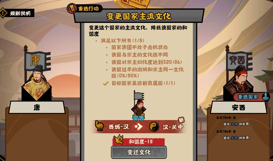 同时文化玩法也会迎来新的拓展,在新版本中,可以推动文化的传播,改变附属国或都护府的文化,真正做到全世界都说中国话。