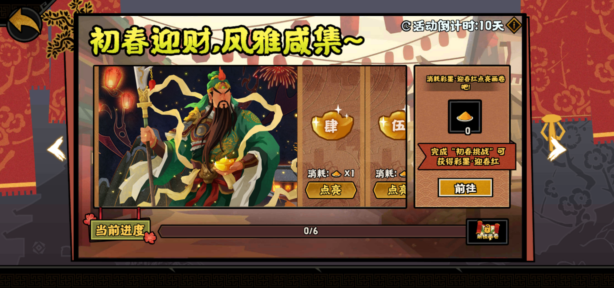1月30日至2月8日,完成初春挑战任务,即可领取丰富奖励。除了玄玉、龙须笔、纹石等丰富道具之外,还可获取全新画卷解锁道具:彩墨·迎春红!为王上的江山画卷再添一抹喜庆春意!
