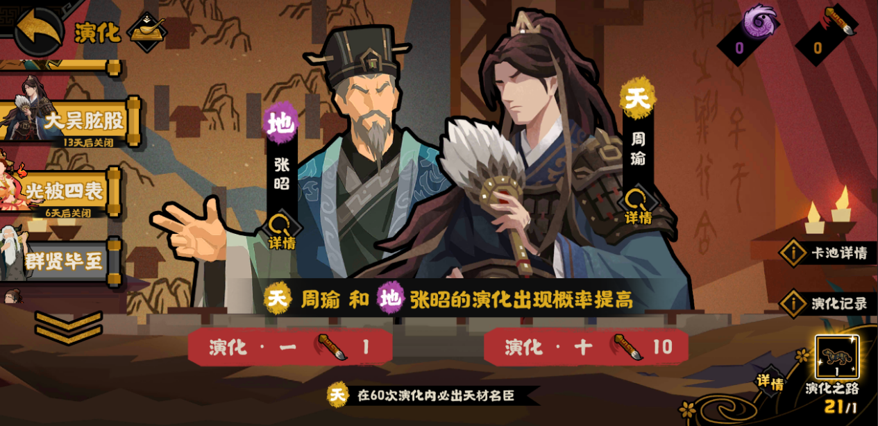 1月23日至2月5日,顾曲安吴业,忠持定江东。天材名臣·周瑜、地贤名臣·张昭演化概率限时上升!