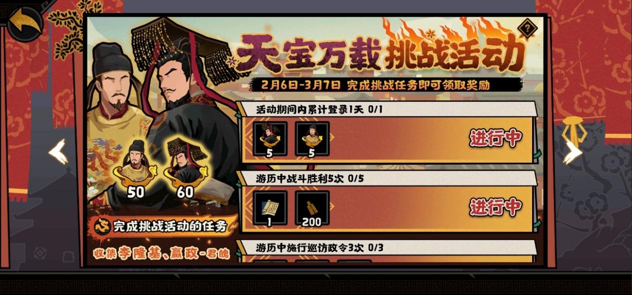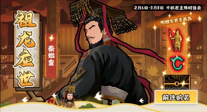 2月6日,全新君主秦始皇、唐明皇上线,届时全新的挑战活动“天宝万载”也将同步登场!完成任务可免费获取全新君主李隆基,喜欢的王上不要错过哦!