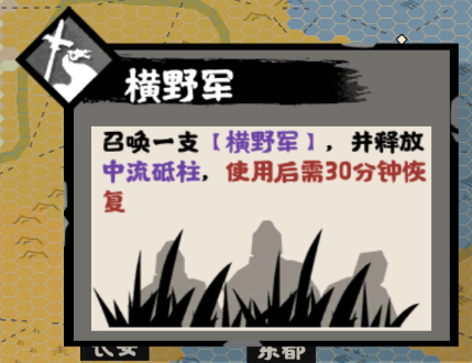 召唤一支【横野军】,并释放中流砥柱,使用后需30分钟恢复;