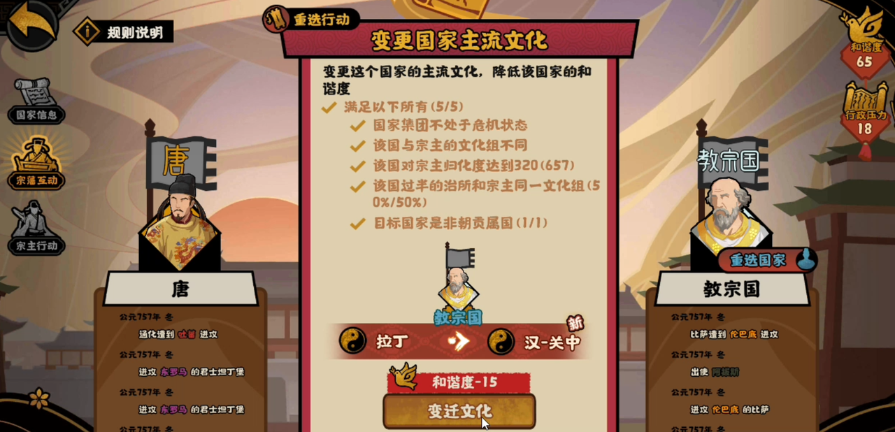 3、【扶危定倾】:初始获得8级扶危定倾,若为唐节度,当唐失去同文化组治所时,朔方获得1级扶危定倾