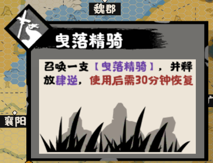召唤一支【曳落精骑】,并释放肆逆,使用后需30分钟恢复;