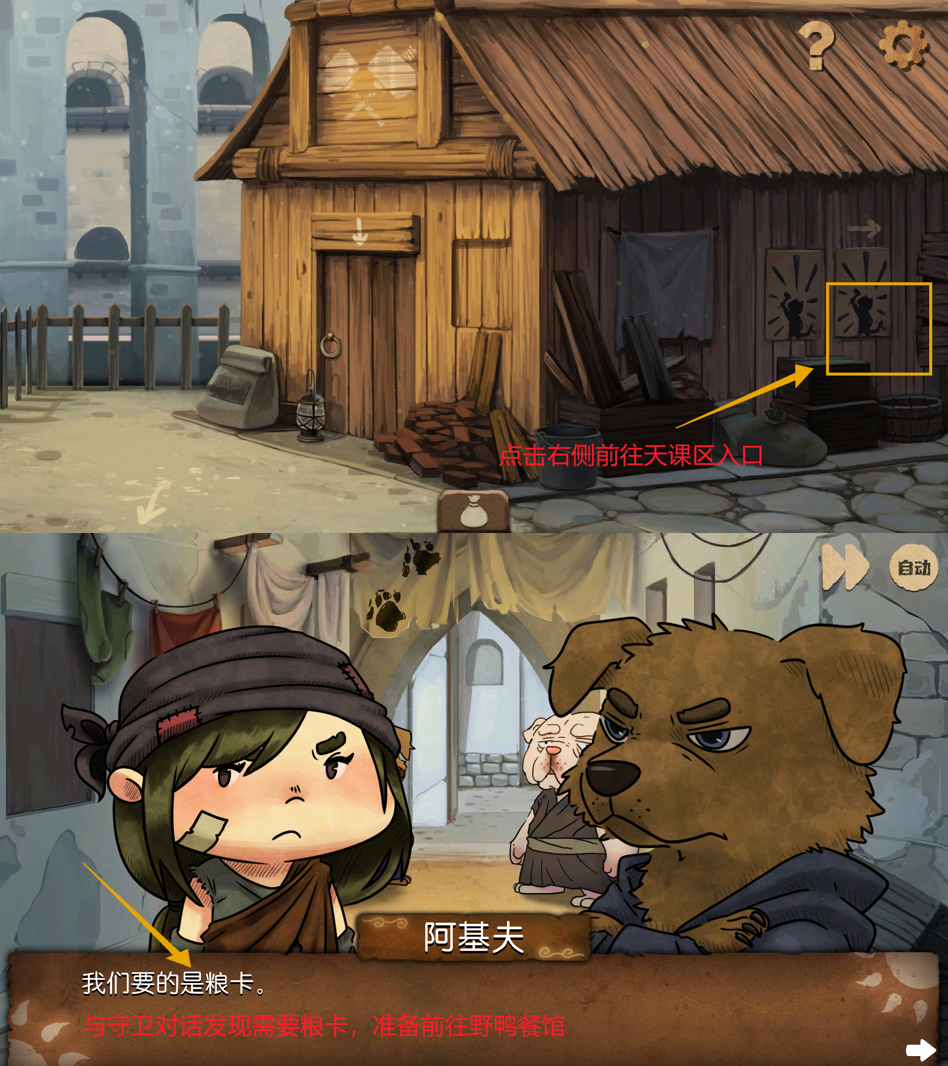 对话完成后,前往工棚旁边的天课区入口,对话后得知需要粮卡才能通过。