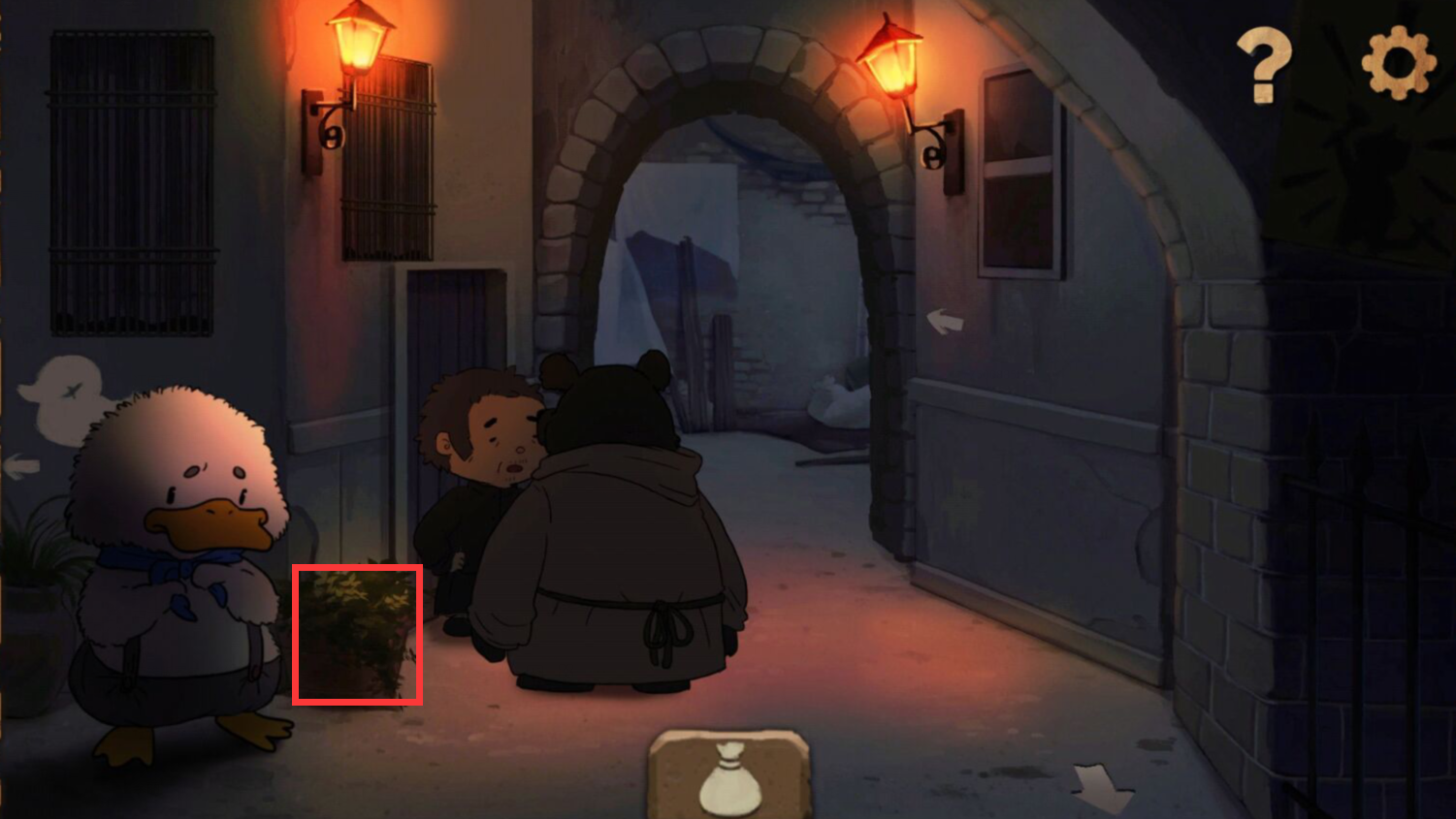 向前到小巷深处,在该处分别拾取「帽子」、胶水,点击图片中的塑料桶及袋子可获得金币。