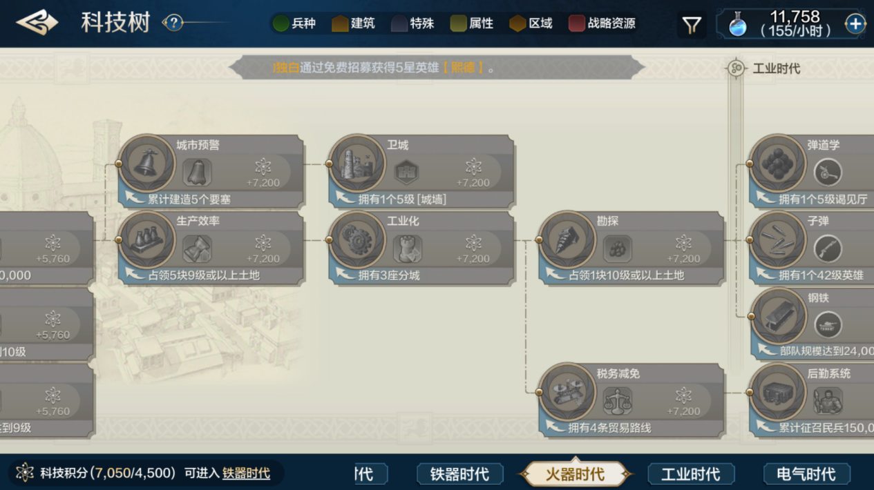 蛮族入侵是《世界启元》中一个非常关键的玩法,它有一个关键的地方:蛮族基本上都是集中在地图的中心区域,刚好9级以上的高级地也多出现在地图的中心区域,而9级和10级以上的资源地也是达成关键科技的加速条件的要点。在后期一项科技所需要的科技点非常多,如果不达成加速条件用科技点硬莽,可能进度会卡好久。