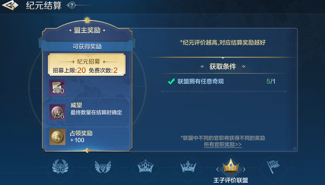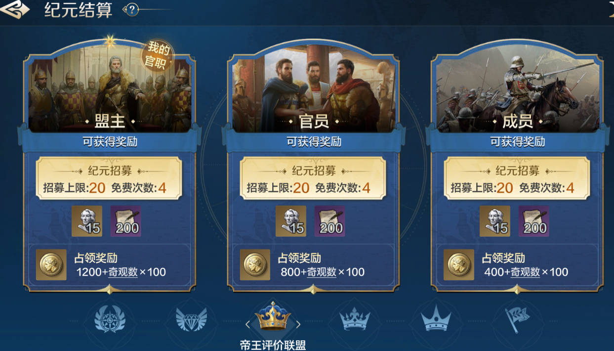 一.纪元结算联盟奖励档次