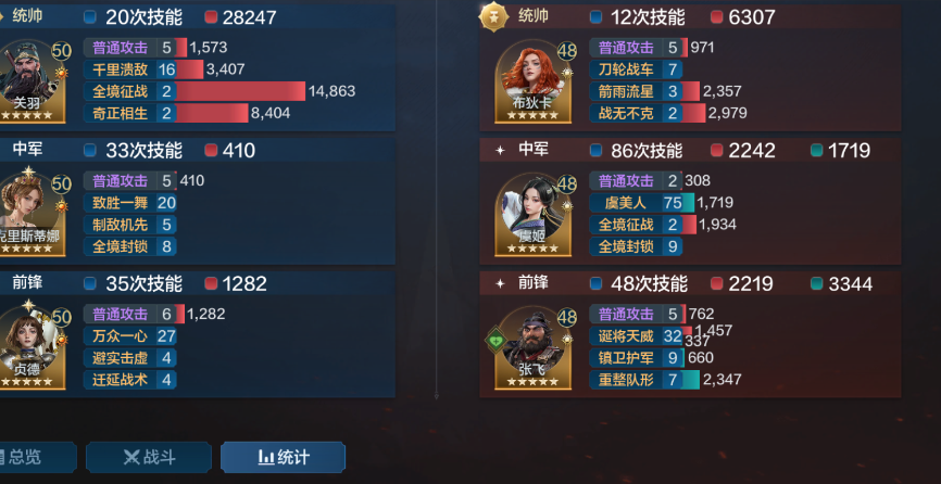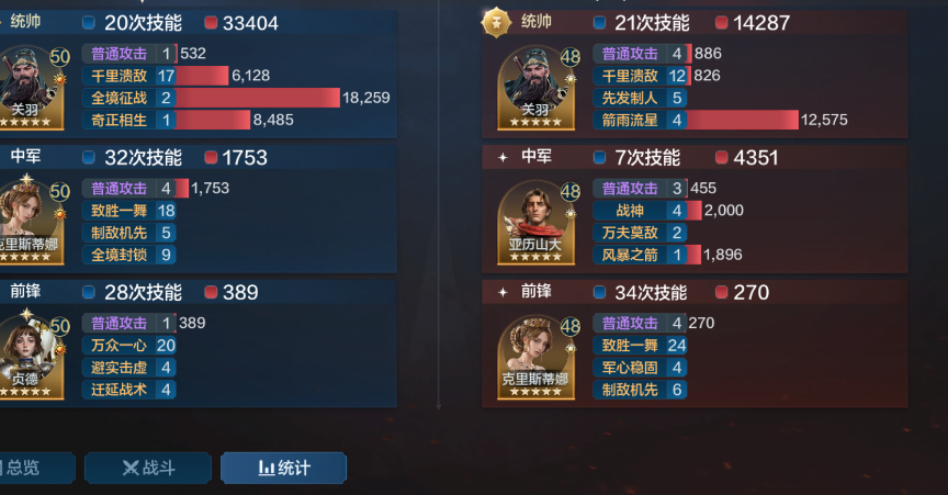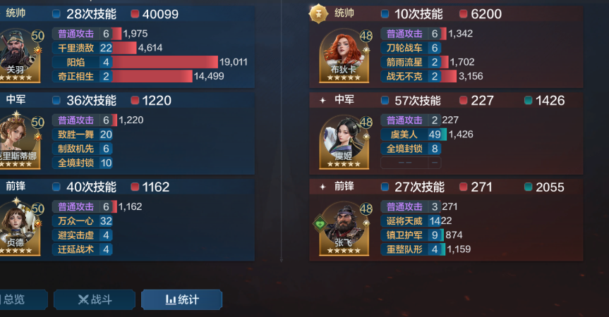 在满发动率的加成下,法关羽的伤害分别为31618、28603、49372、18545、22381、37919、33538、40099、37144、40741,均值为33996