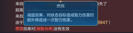 两种状态可以共存,重复添加时会刷新而不是叠加。由于灼烧每回合会扣血,且是智力伤害,这能触发燃烧的效果,使敌方进一步受到伤害。不过需要注意的是,这两种效果似乎不会触发智力暴击。在目前的测试中来看,只有法系技能的直接伤害(不论是多段还是单独一段)会触发智力暴击,暂未见过其他添加的效果或者附加的伤害触发智力暴击。