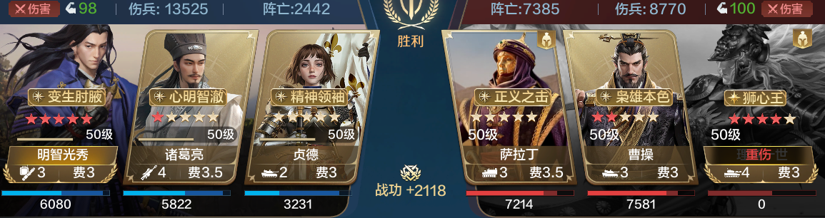 没吃到锐不可当效果虽然也可以赢但是战损会提升,而且只能打平局