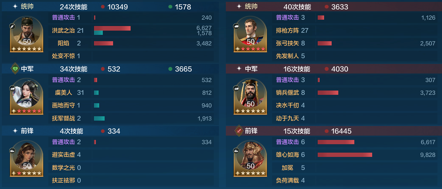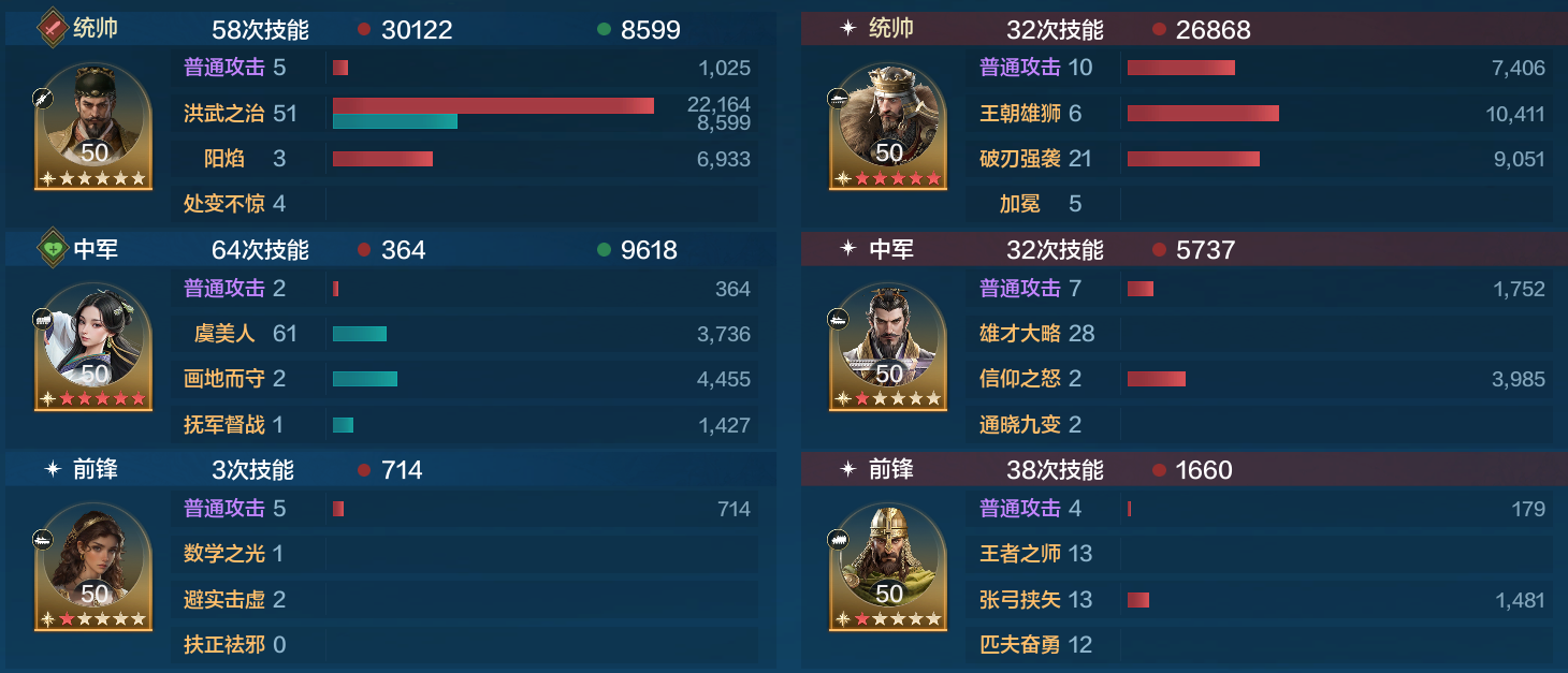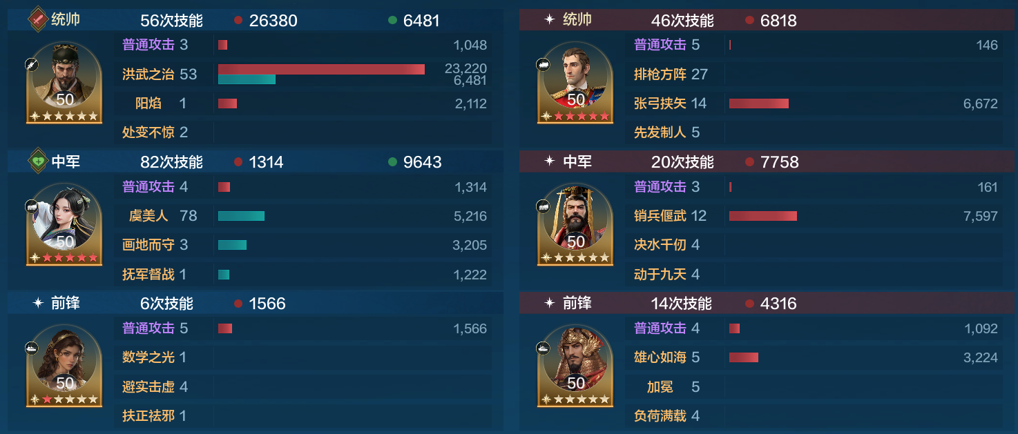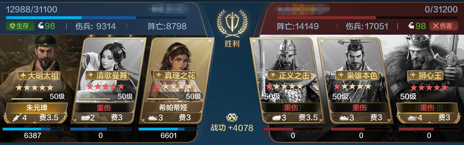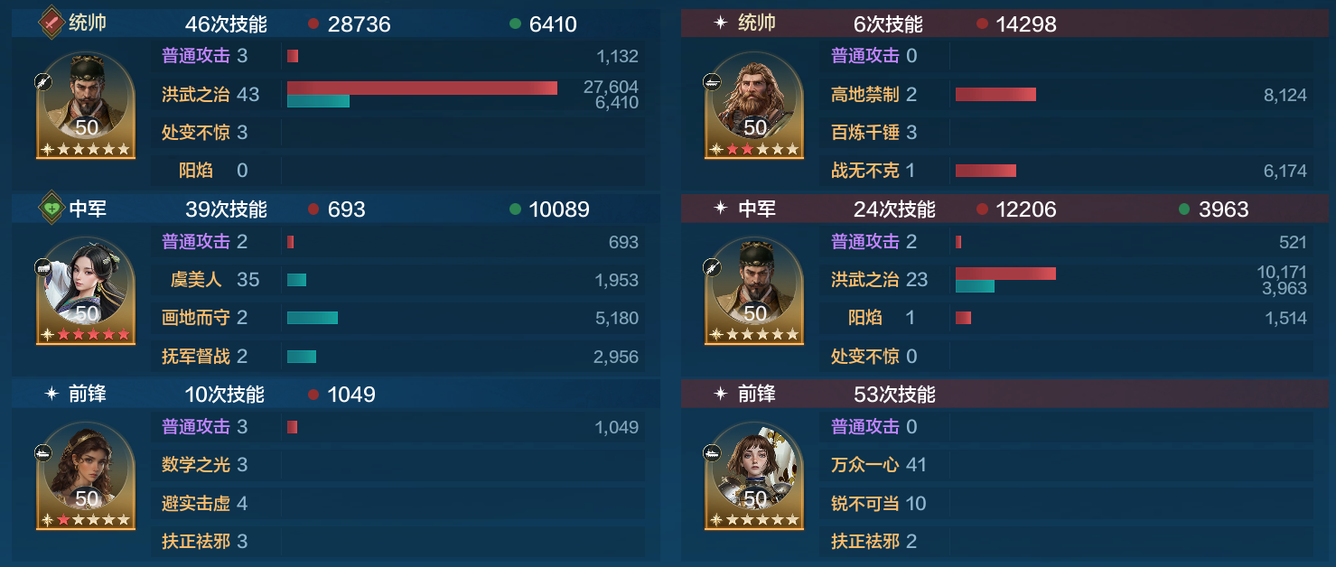 对战现在很热门的郑成功爆头队,希帕蒂娅也仅仅发动了一次就控的郑成功只造成了4000点伤害,而朱元璋造成26000的伤害成功拿下胜利。