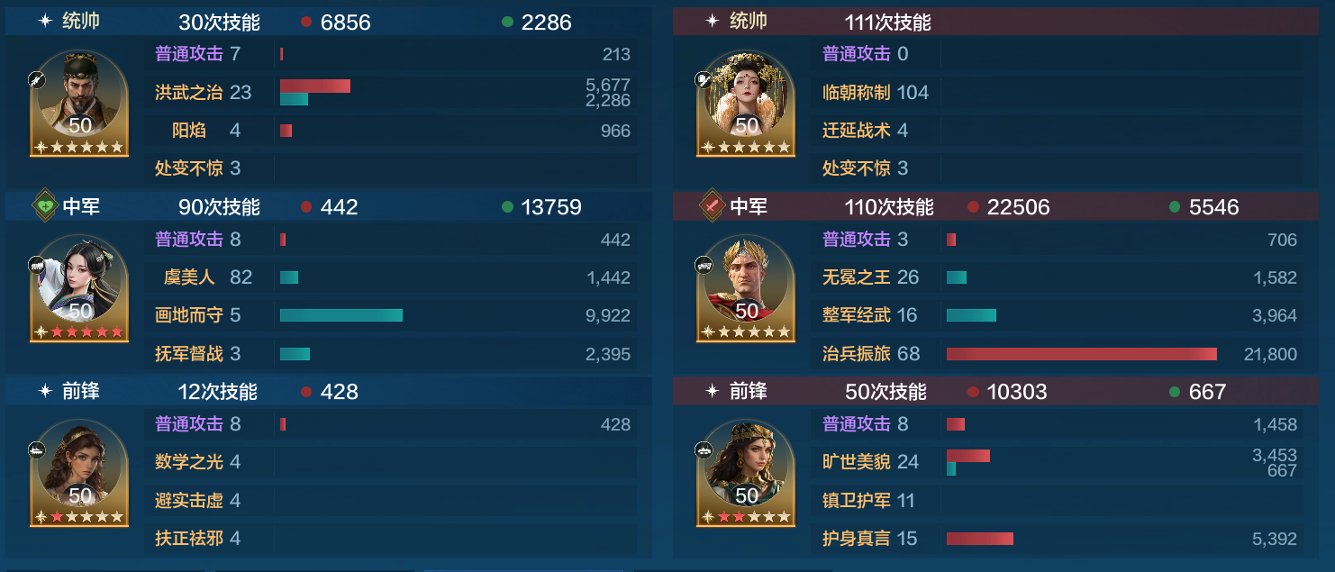 对战免控菜刀也是一样,虽然6回合只发动了一次,但是又发动就能取得胜利,以虞姬重伤的代价取得了胜利,如果多发动一次战损就会小很多。