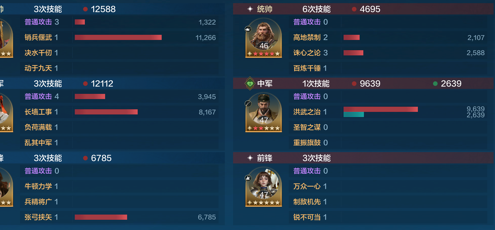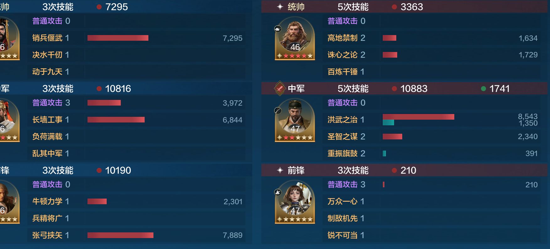 选择牛顿则用兵精将广+张弓挟失的技能组合,牛顿自带法系反伤,因此带了张弓挟失以后全队除了能先手输出外还可凭借技能本身的伤害弥补队伍输出不足。