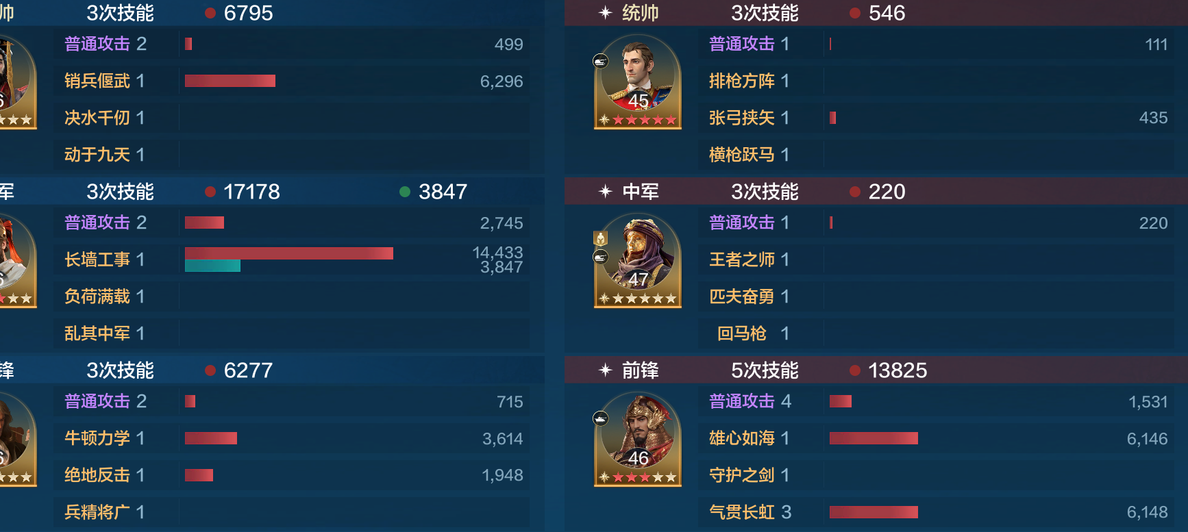 如果前锋选择马克安东尼建议用绝地反击+兵精将广的技能搭配,兵精将广可以让安东尼前三回合保护全队,搭配绝地反击触发反伤来弥补队伍伤害
