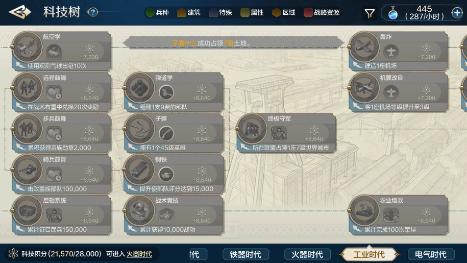蛮族入侵直接关系着工业时代三个非常关键的科技的加速条件的达成,尤其是远程系的远程鼓舞,如果临时抱佛脚的话,可能这一项科技要卡好几天,除非舍得拿海量的科技点直接冲。