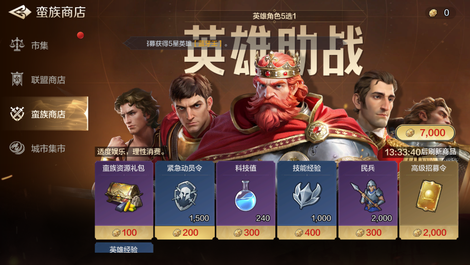 守护勋章能在的蛮族商店中能领到进一步的奖励,靠打蛮族拿的守护勋章兑换。可以兑换基础资源、动员令、科技值、民兵、技能经验、抽卡次数、英雄经验,甚至还能使用英雄助战,奖励还是相当不错的。