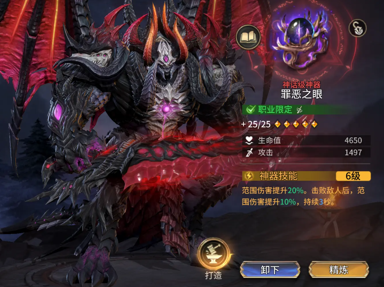 埃萨雷斯可选择神器罪恶之眼,可提升自身范围伤害,在击败敌人后还有额外增伤。
