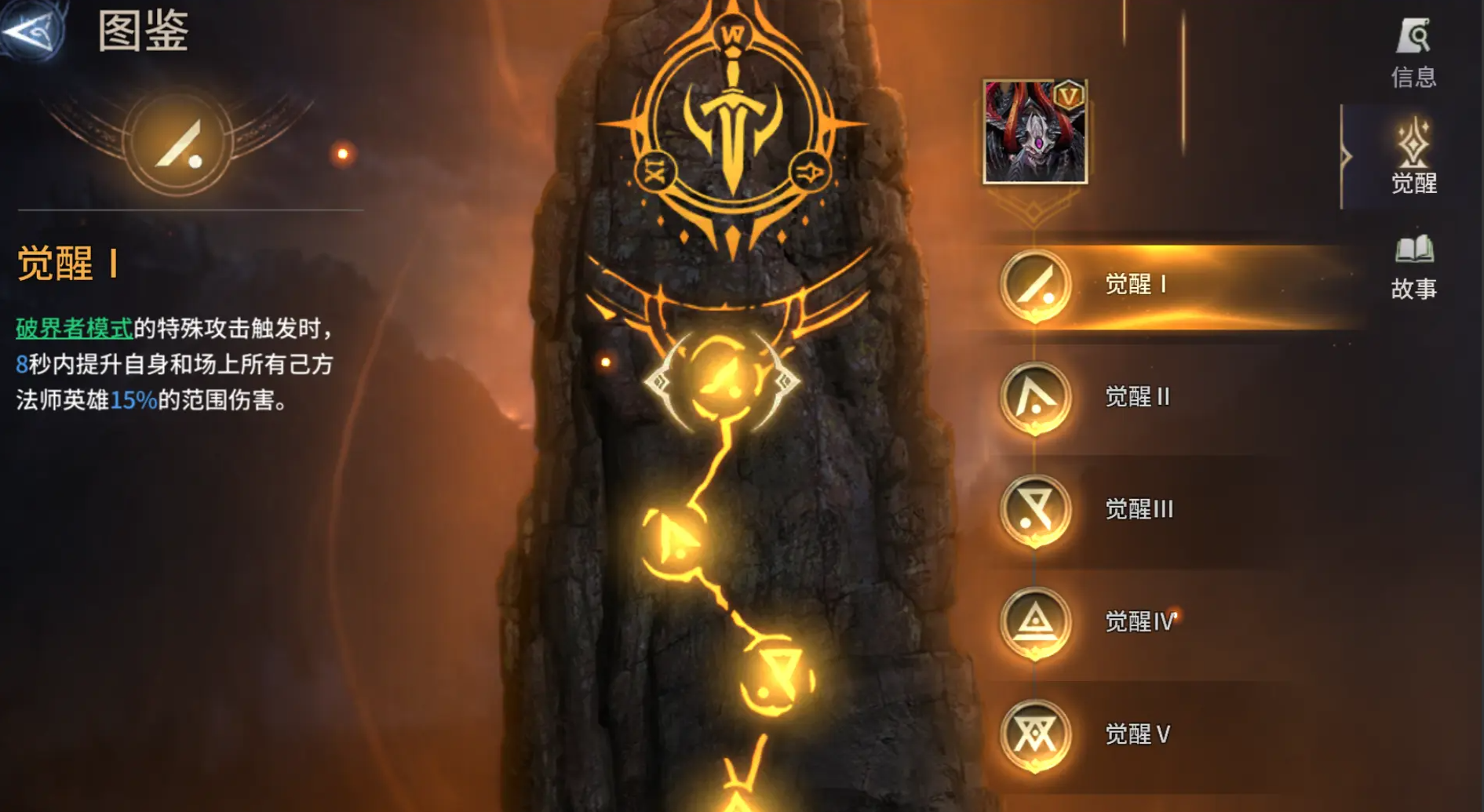 红池领主获取成本较高,一般来说白板即可,有条件可以追1觉。埃萨雷斯在1觉触发破界者特殊攻击后,可提升自身、友方法师英雄范围伤害,能进一步提升全队输出,泰坦5、群体竞技场都会更好用;埃萨雷斯升到3觉后吞噬每触发2次,可额外获得1次异髓,能加快群体伤害的发动频率。5觉可使破界者特殊攻击无视目标25%魔抗,对于输出也有较大提升。平民白板可用,氪佬可以追1觉、3觉,后续有魂石也可继续觉醒,埃萨雷斯有较高的觉醒价值。