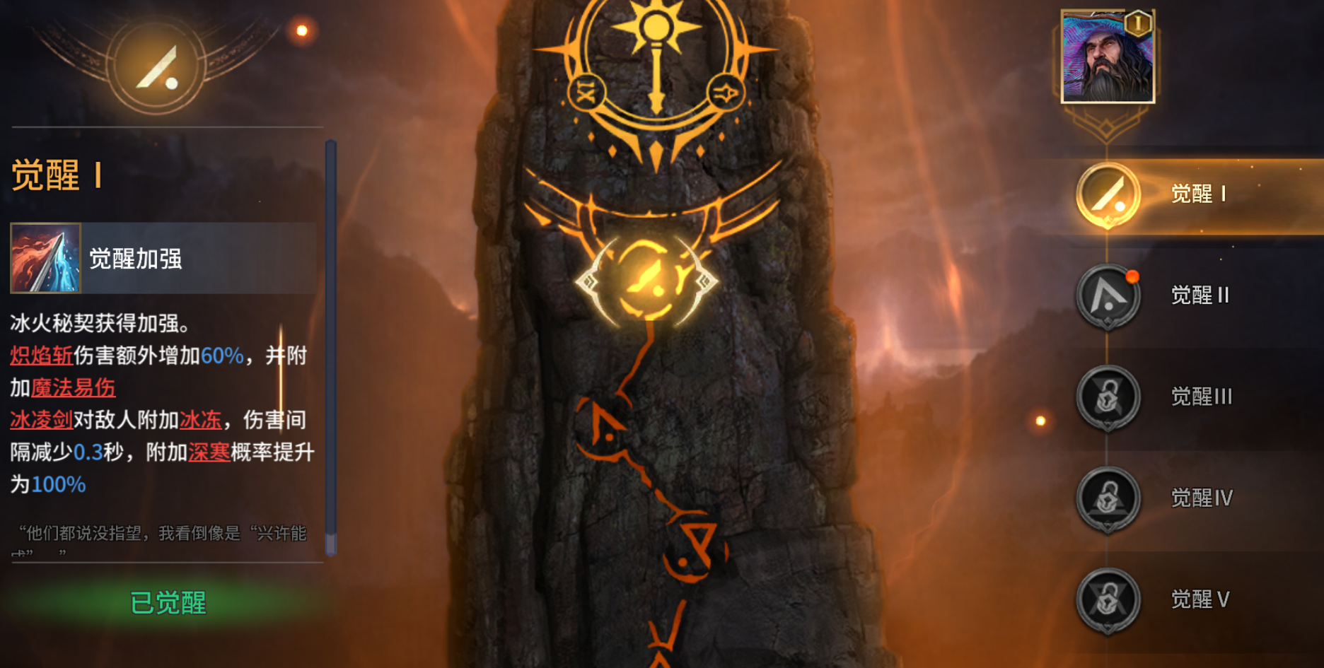 冰火秘契(额外伤害):5次普攻可基于形态触发炽焰斩或冰凌剑,火是单体输出,冰是群体输出、控制,这么理解就行。