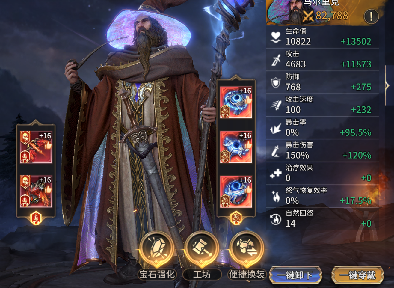 马尔里克在提升攻击数值后,可进一步提高输出(自身主要通过火焰形态打伤害)。两件套选择战争之主/邪恶复仇提高自身攻击数值;三件套可选择古灵绝秘提供增伤。装备主词条选择攻击加成,副词条优先选择攻击、暴击率、暴伤、生命值等词条。