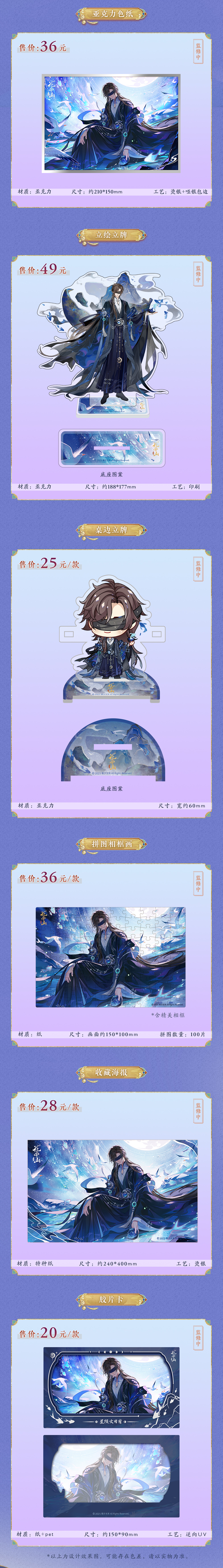 ⭐️家主季元启、熙王宣望舒、溯雪凌晏如、定风宣望钧、星陨文司宥SP新装周边预售上新!