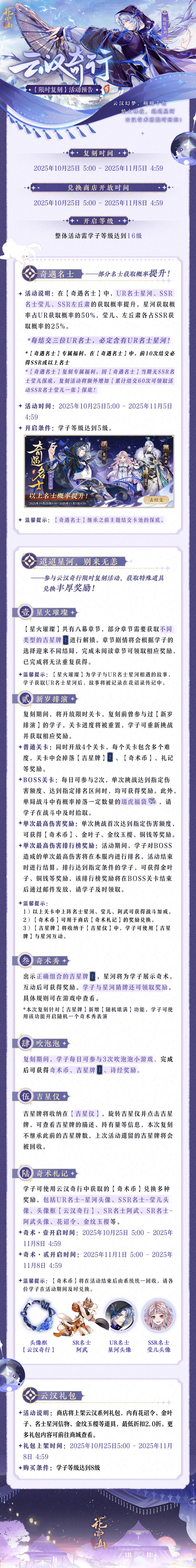 “云汉奇行”复刻活动将于10月25日开启,更多具体活动内容请见长图。