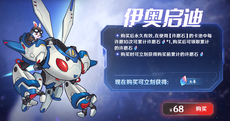 终生特权,购买之后在使用【许愿池】的卡池每许愿10次可累计获得1个许愿石,抽的越多送的越多,早买晚买都不会亏。