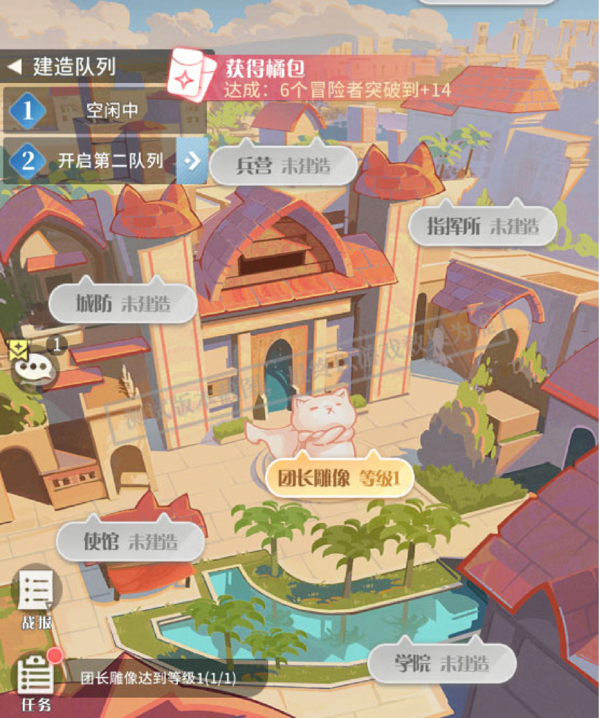 ○ 团长可以用资源建设自己的基地,制造兵力、提升科技,成员之间可以互助加快建设、科研的速度。