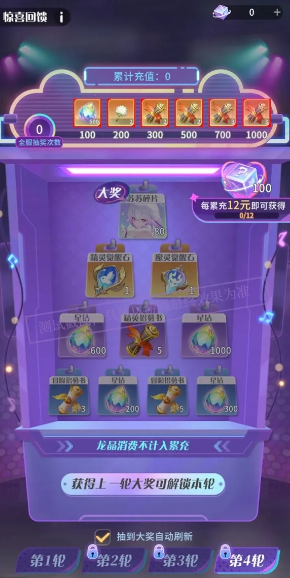 - 活动期间,累计充值可获得抽奖道具。