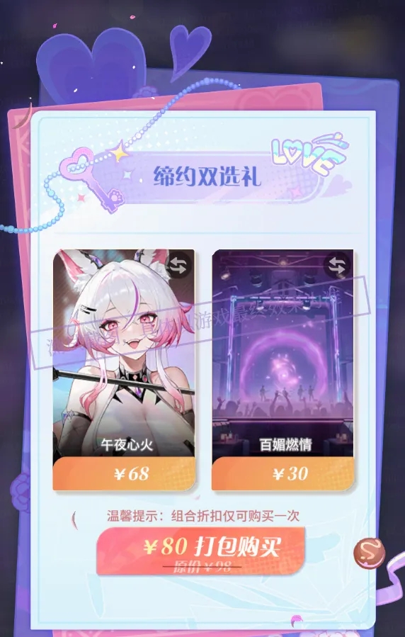 - 可在橘屋售卖中以超低折扣打包购买「缔约双选礼」(含苏苏看板娘【午夜心火】和橘屋背景【百媚燃情】)!也可单独购买。