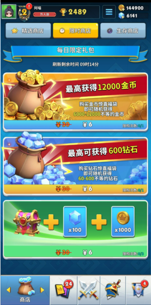 限时特价商店中会随机刷出各种特价礼包。礼包内除了巨量金币,还包含对应的宝箱。