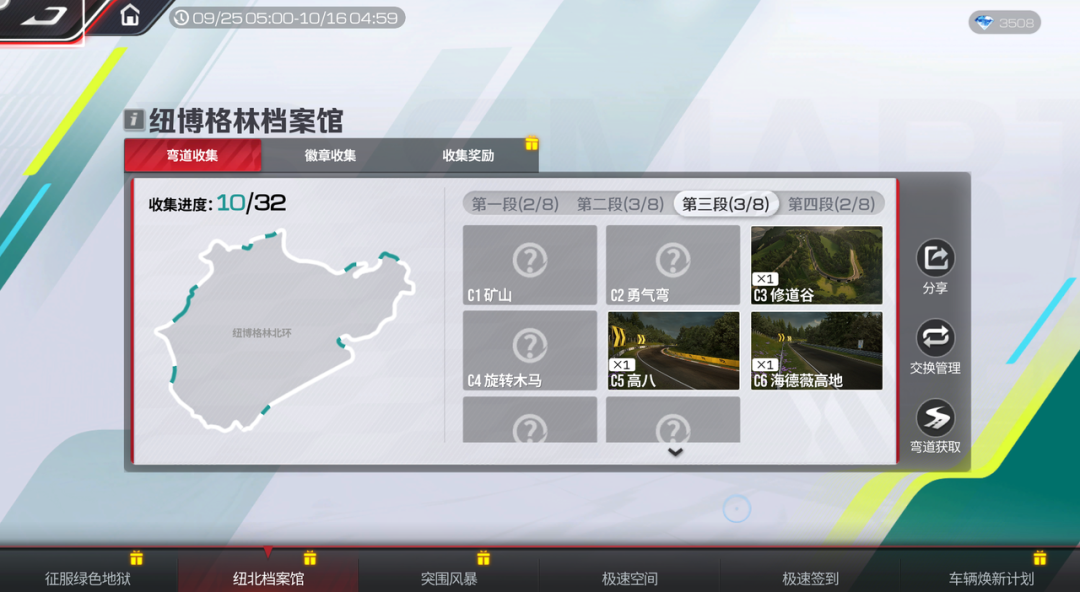 地图为纽博格林北环,赛程分为极限组、性能组、运动组,车辆自选!
