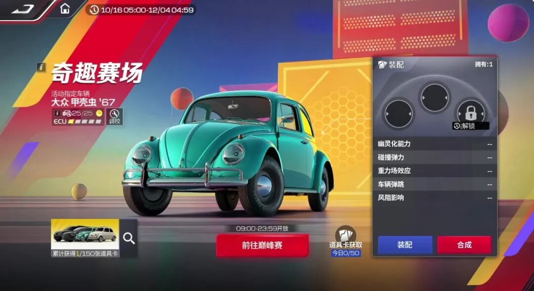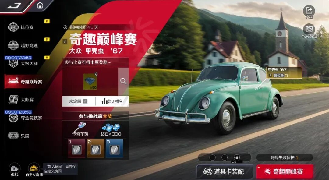 装备齐全后,你的复古“小甲虫”是否已经躁动不安,渴望一场真正的挑战?来吧,是时候驾驶你的专属座驾,在限时开启的奇趣巅峰赛中一展身手了!