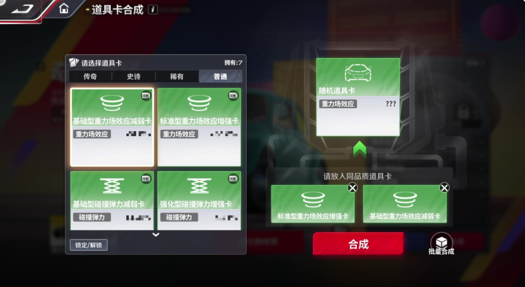 如果你觉得你的觉得卡片不够强?那就来将它们合成吧!没错!使用2张相同品质的道具卡即可合成1张新的道具卡,新卡将拥有新的属性类别和强度,并有概率提升品质!