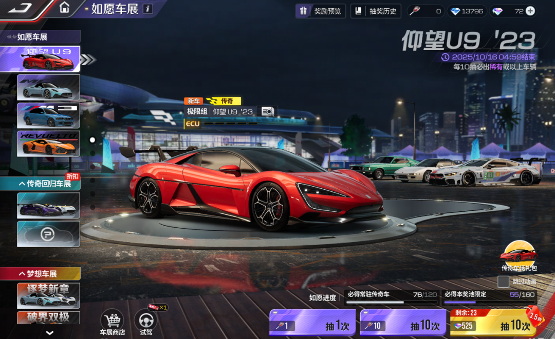 上线第二件事:打开【巅峰车展】,合理规划你手中的抽奖资源!如果U9是你的主力爱车,这可是为它升阶的黄金机会!