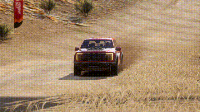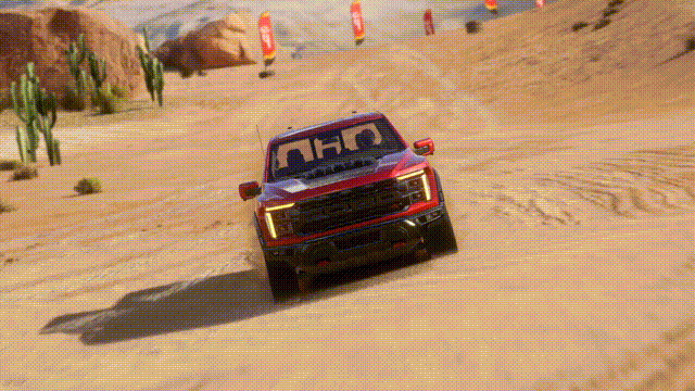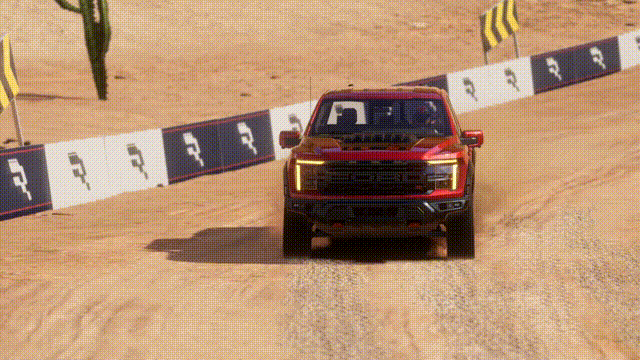 正是这种“智慧”让福特 F-150 猛禽 R '24在沙丘飞坡时,不仅能最大化吸收冲击,让车轮始终紧贴地面;在连续弯道中,又能提供强有力的侧向支撑,使高重心车身依然保持稳定姿态——让车手敢于以皮卡之躯,践行赛车的过弯节奏!
