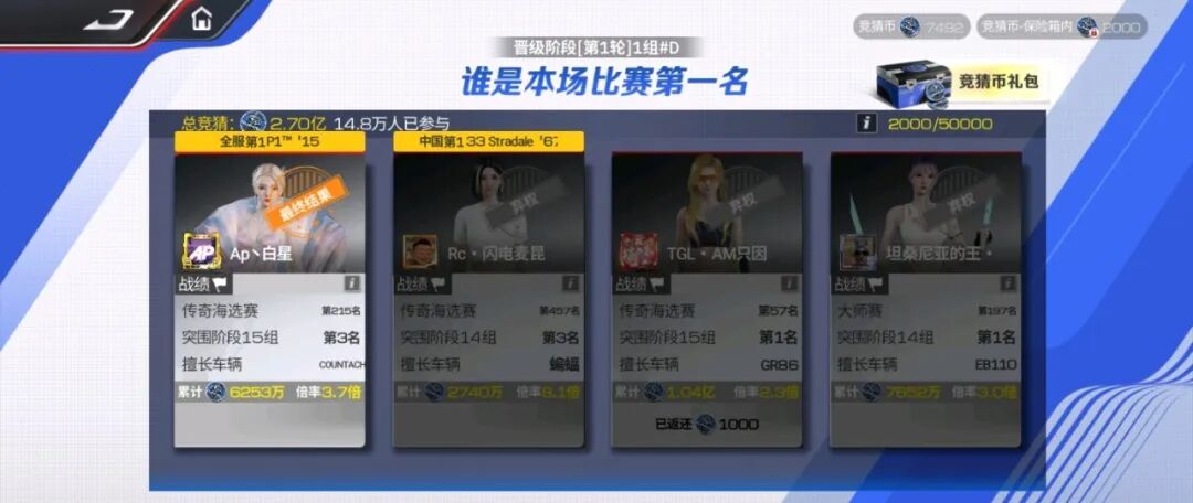 从晋级阶段直至总决赛巅峰之战,每一个比赛日,只需轻松登录游戏,即可免费领取2000竞猜币,为你的心仪选手下注助威,毫无压力!
