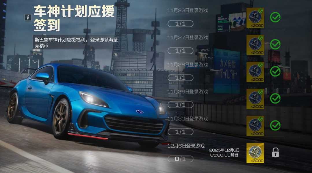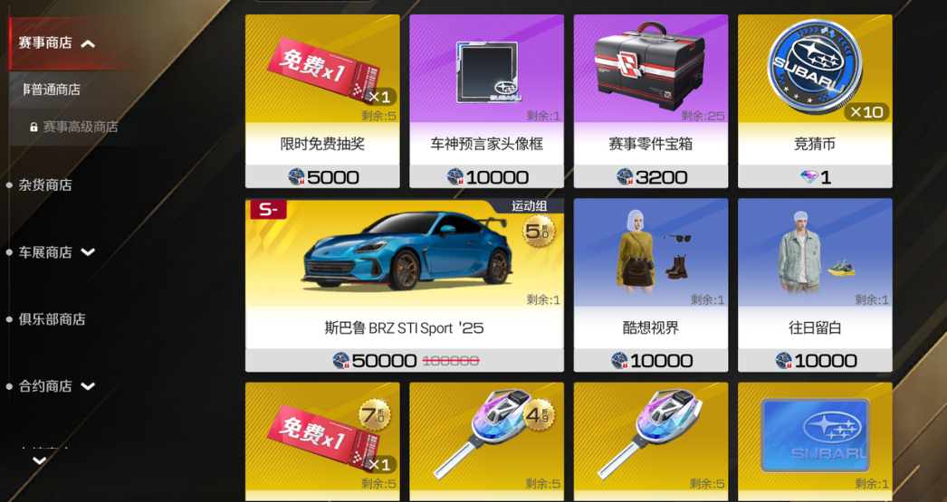 解锁高级赛事合约福利直接拉满!达成指定等级就能再抱走一台斯巴鲁 BRZ STI Sport '25,还能解锁赛事高级商店兑换车辆、套件、时装、道具等限定好礼;更有10w竞猜保护额度保驾护航,外加瓜分钻石彩池的机会!