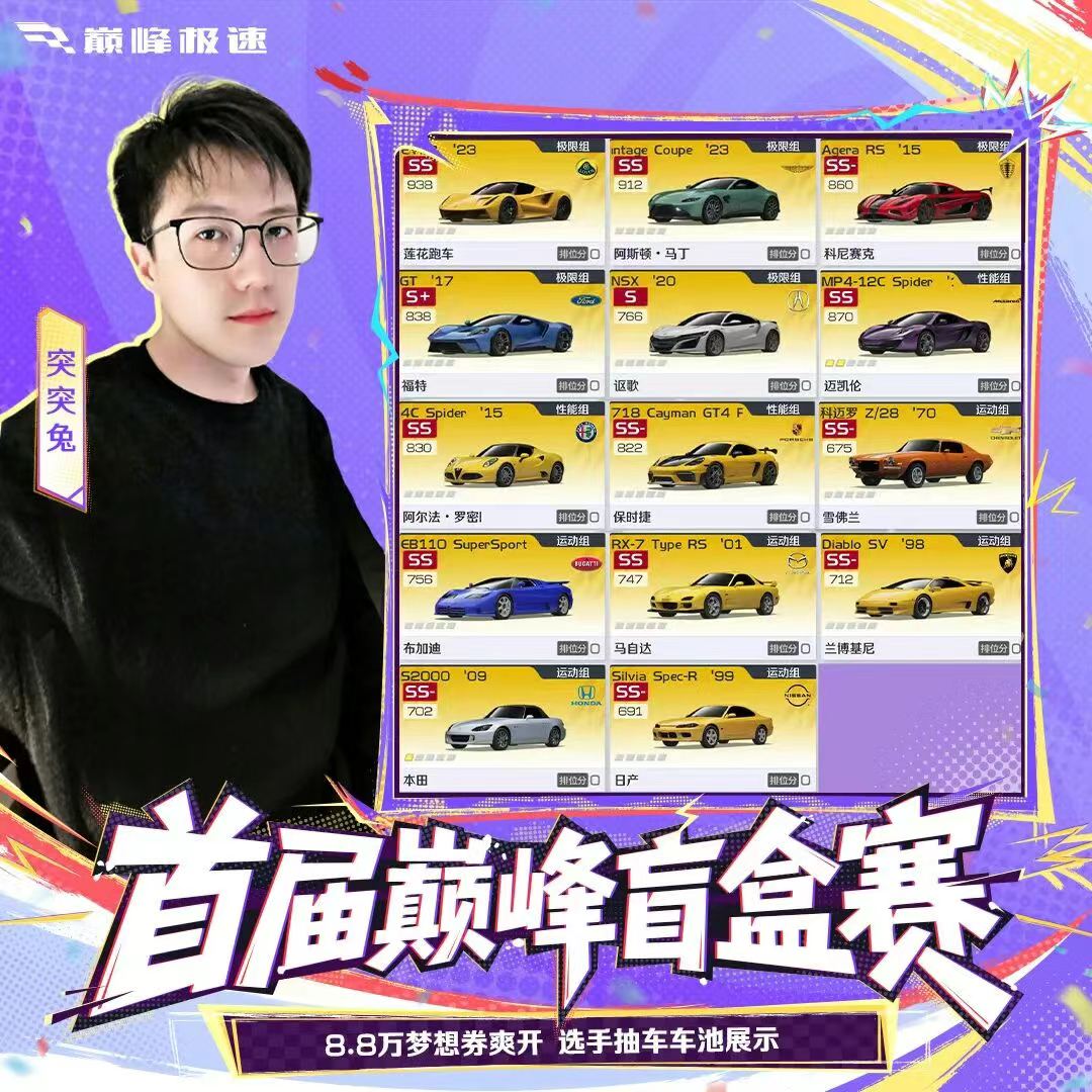 明天的线下决赛堪称双倍狂欢!除了热血沸腾的【车神计划】赛事,更有首届巅峰盲盒赛等你来观看,8位人气主播@小猪、@蛋蛋、@沐木、@阿坤、@海宝、@突突兔、@拿铁、@阿汶已集结完毕~