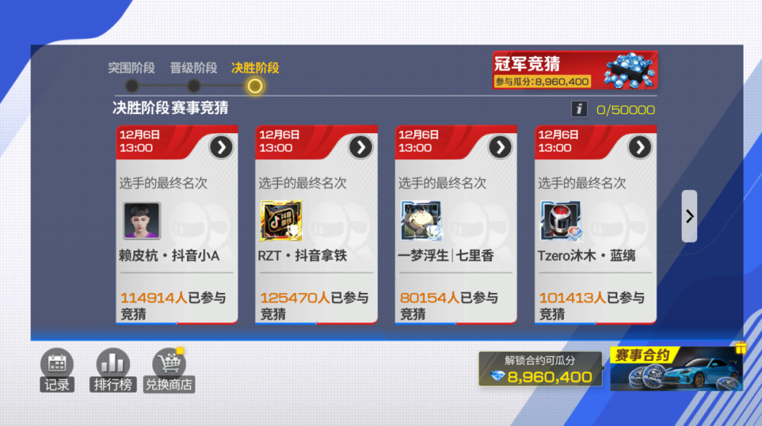 八强选手整装待发,各位车手心中的冠军pick已经锁定了吗?快来评论区留言告诉小可你最看好的那个TA吧!