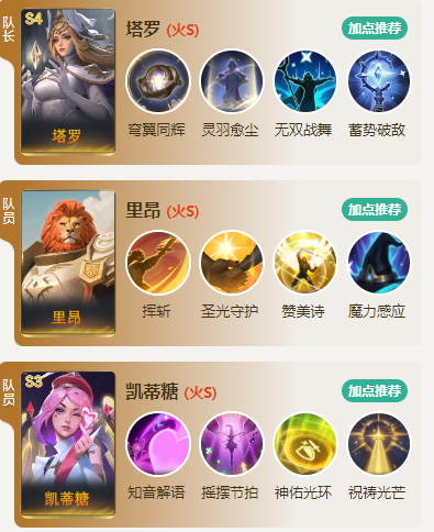 该阵容主打的就是一个平衡,塔罗偷取属性叠加优势,同时提供治疗效果,同时在攻防两端都能有很好的表现;里昂技能兼具多重效果,如输出、吸血提升、分担伤害、回复生命、为队友增伤等;凯蒂糖治疗稳定,且可补充伤害。整体而言,该队伍具有比较多的增益类型,攻、防、生存、辅助等方面都没有明显短板,平衡性极佳。