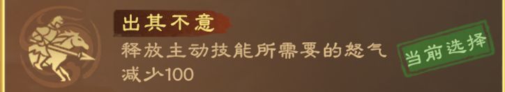 张辽作为主将,需要配合自身被动技能频繁加快全队循环,因此需要选择“出其不意”。