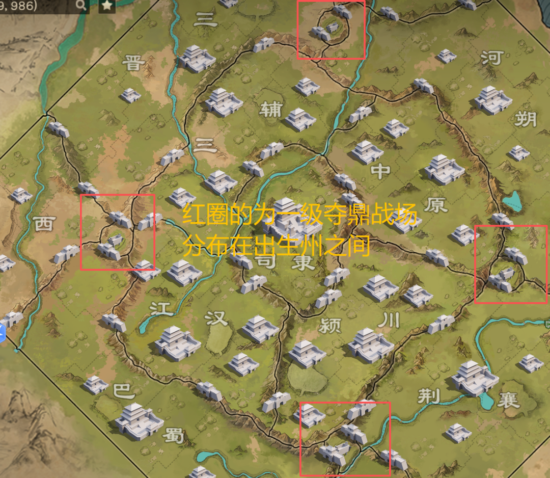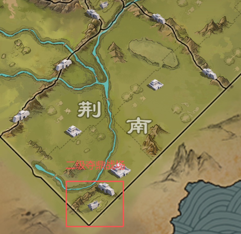 ● 一级夺鼎战场:一共4个,分布在出生州之间两两相连,可通过链接的关隘进入;