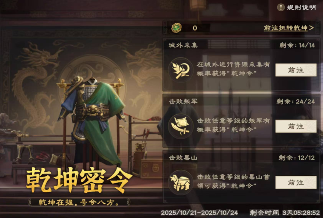● 活动期间可以通过完成各项日常任务获得乾坤令,累计可获得50个乾坤令。