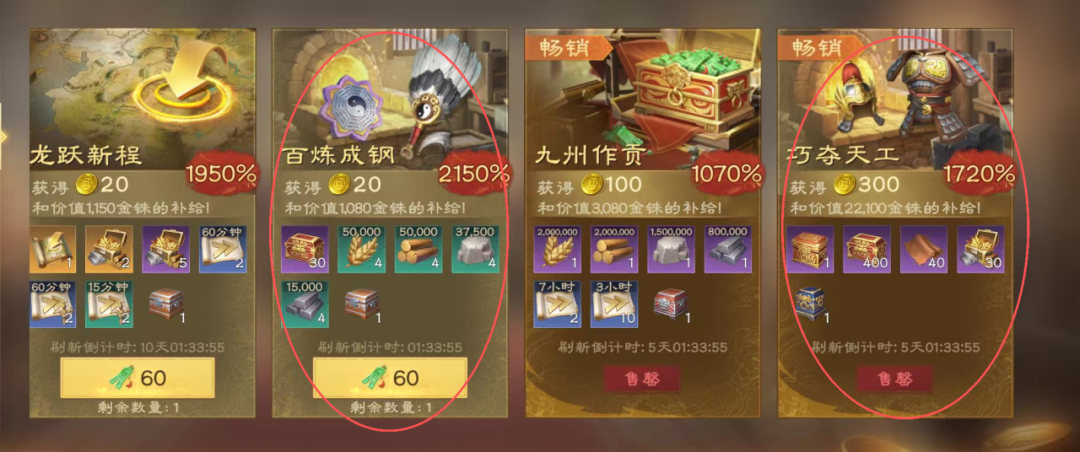 除上述活动以外,在一赛季末期开启了限时百炼成钢礼包,各位主公量力而行哦~