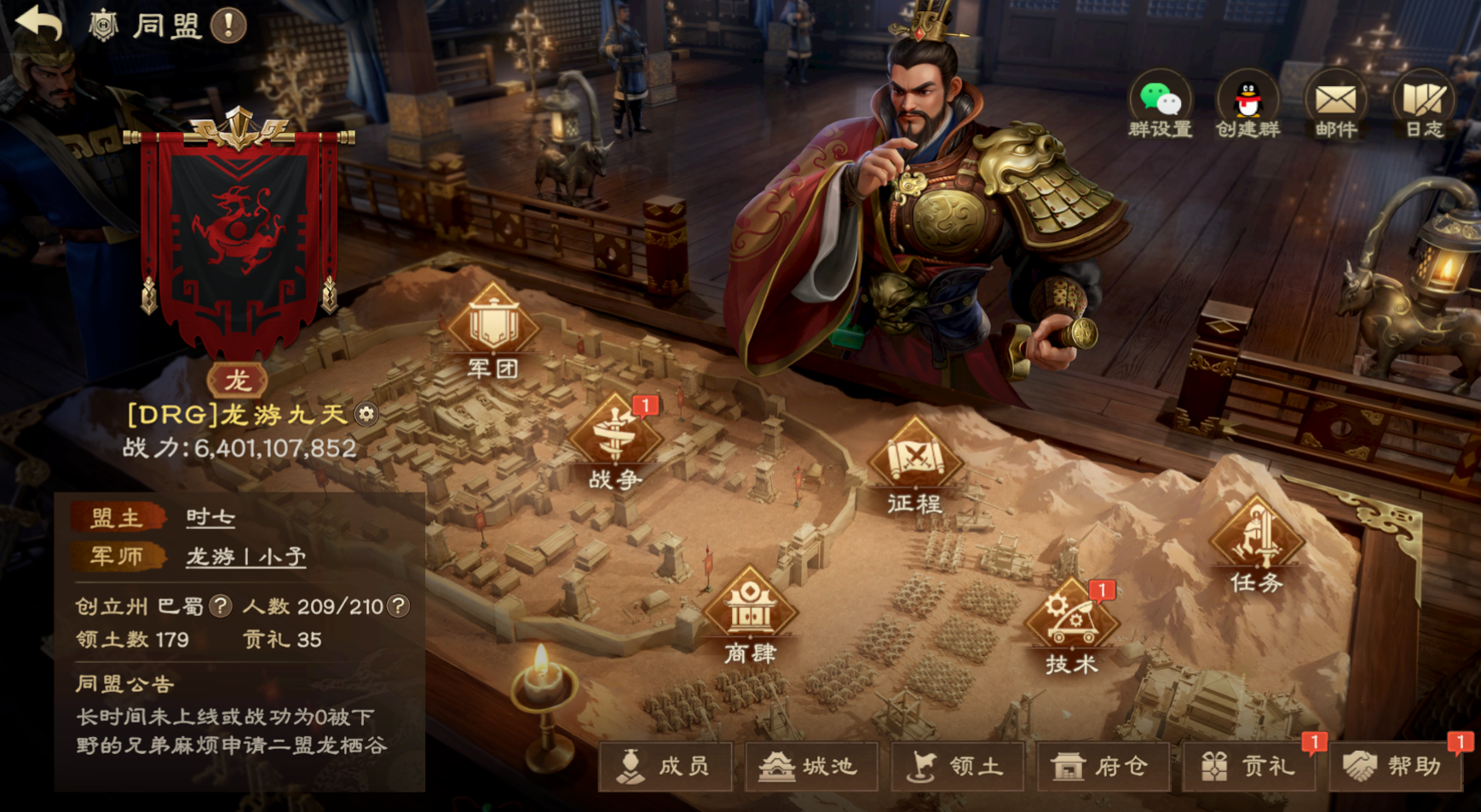 时七:起初联盟在刚集体转区重组时,也没想到能有今天的发展~当时本意想着跟一帮小伙伴在偏郊区当老农民,打打养生局的,图个清闲开心。后来在华哥直播的帮助下,越来越多五湖四海的朋友加入了我们,大家融入的很快~相处非常愉快!后面也是慢慢发展到了现在的规模,感慨颇多,可能这就是SLG的特色吧,在此也是想对华哥以及全盟兄弟说声谢谢~没有大家的努力就没有龙游九天的今天~
