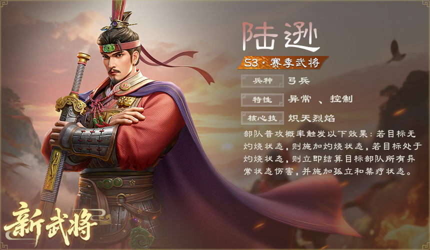 陆逊将异常与控制流派推向新的高度。他的普攻可概率施加异常状态,若目标已身处特定异常状态,则会立即结算所有异常伤害,并附加孤立与禁疗效果,施加异常状态时概率获得勘破。谋略制敌,一键清场!